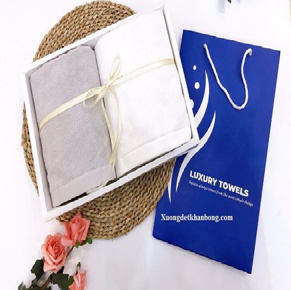 - Tùy theo Ngân sách cho một phần quà mà bạn có thể đặt Khăn quà tặng theo Bộ 2 chiếc, 3 chiếc hoặc nhiều hơn nữa. Thông thường các Doanh nghiệp đặt Khăn quà tặng cao cấp với Bộ khăn quà tặng có giá khoảng từ 200-300 ngàn đồng