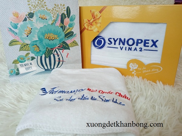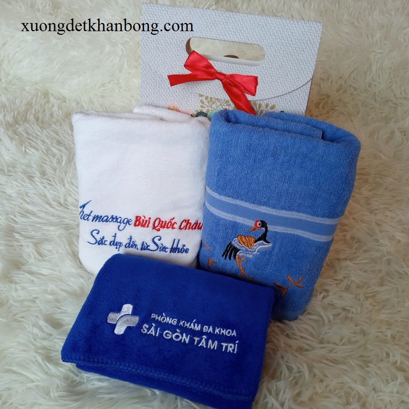- Khăn được thêu Logo theo yêu cầu của khách hàng