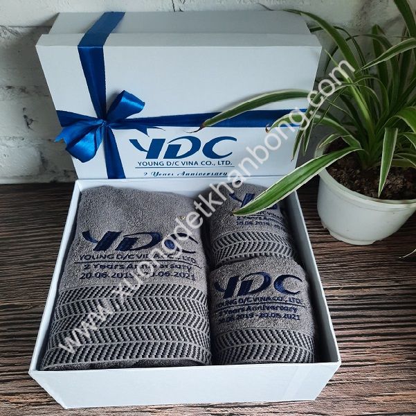 * Khăn quà tặng thêu logo đựng trong hộp cứng sang trọng
